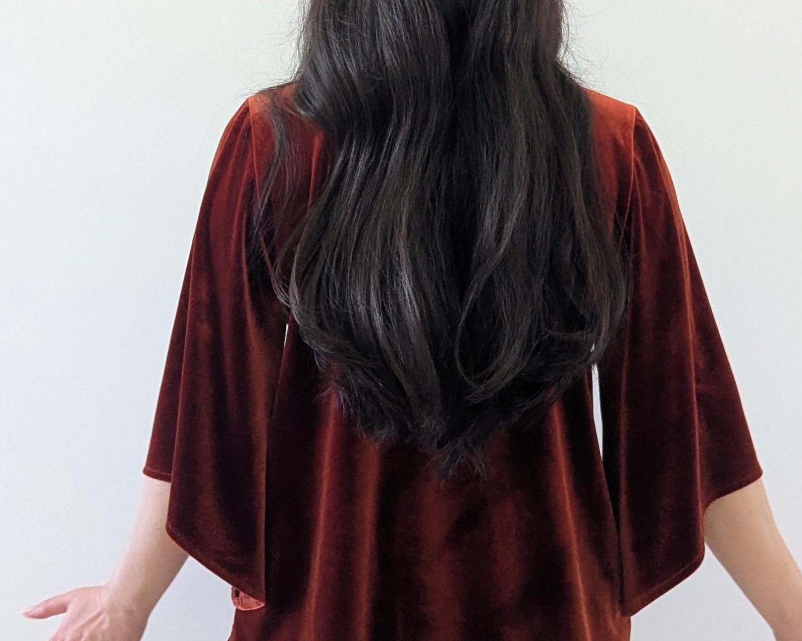 The Velvet Flutter Dress is my new favorite little dressy dress. Keep it simple with booties or flats or dress it up with a belt and jewelry. Please note that the Rust Orange, Toffee, Blue Steel, & Jet Black fabrics are slightly heavier-weight than the Pink Mauve, Plum Purple, & Olive Green. Velvets appear dramatically different depending on lighting. Please request a swatch first for $1 if you're unsure about a color.