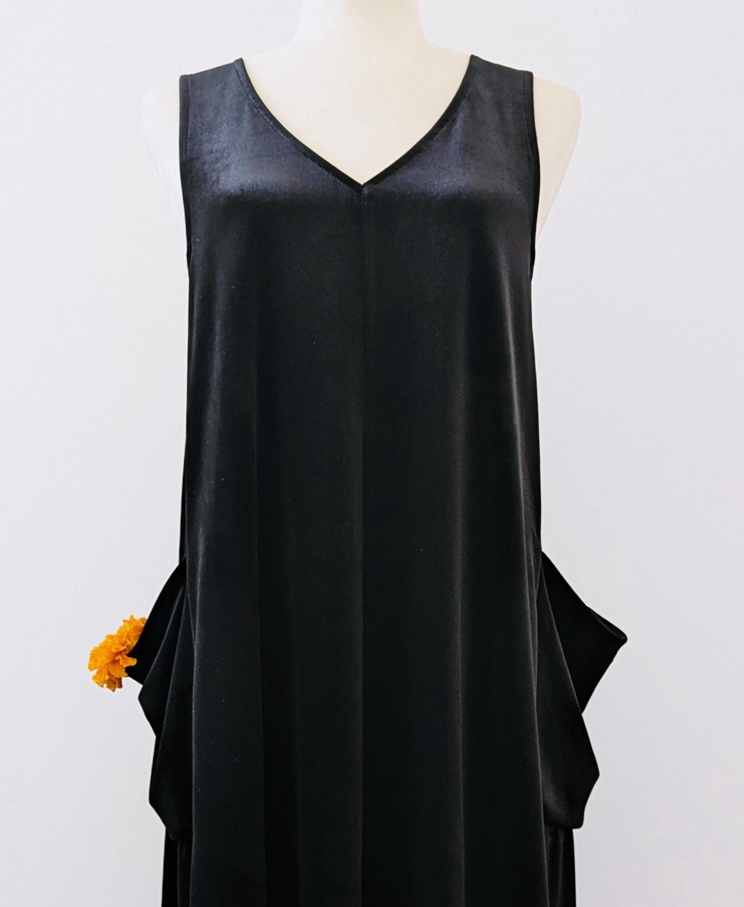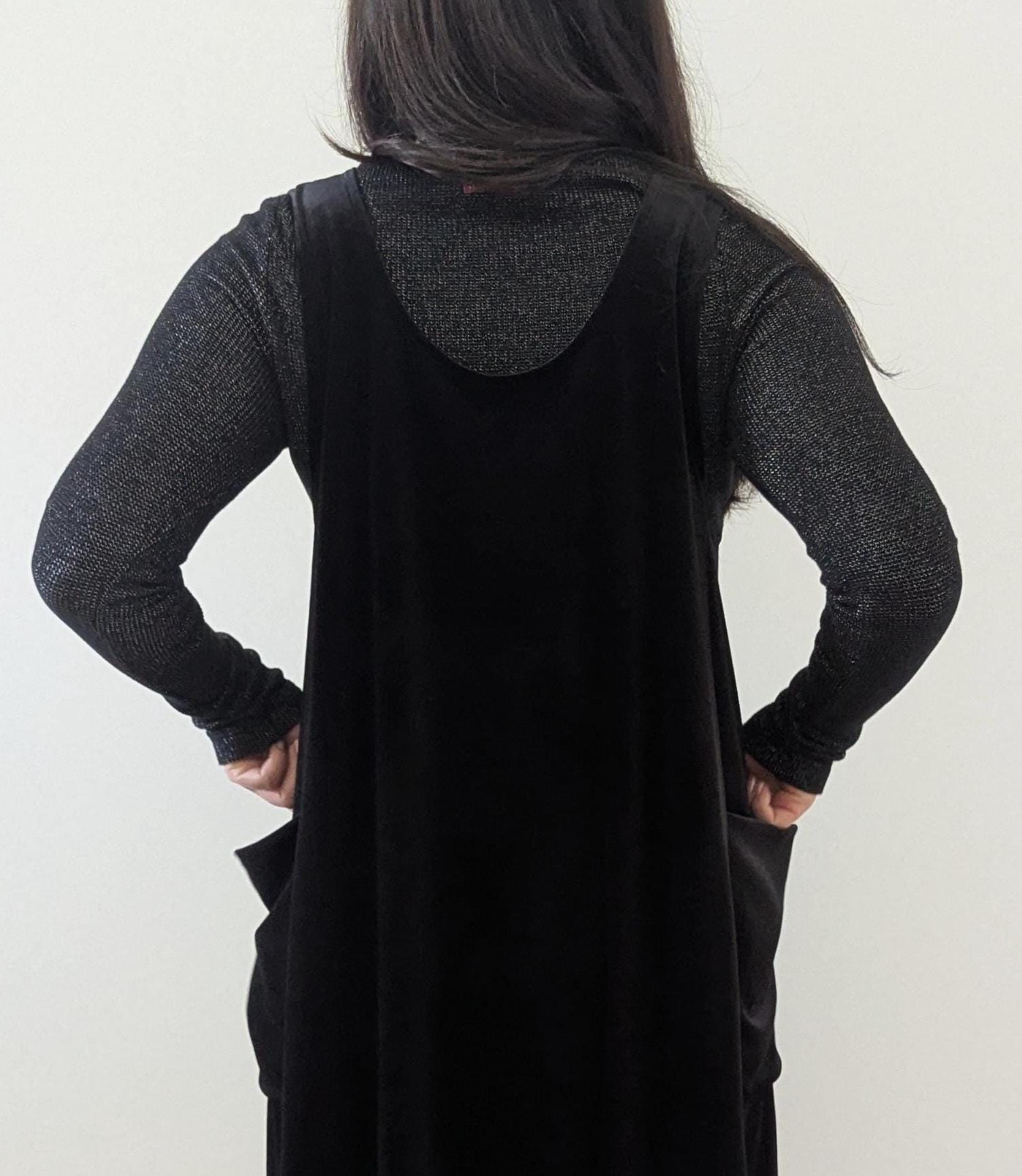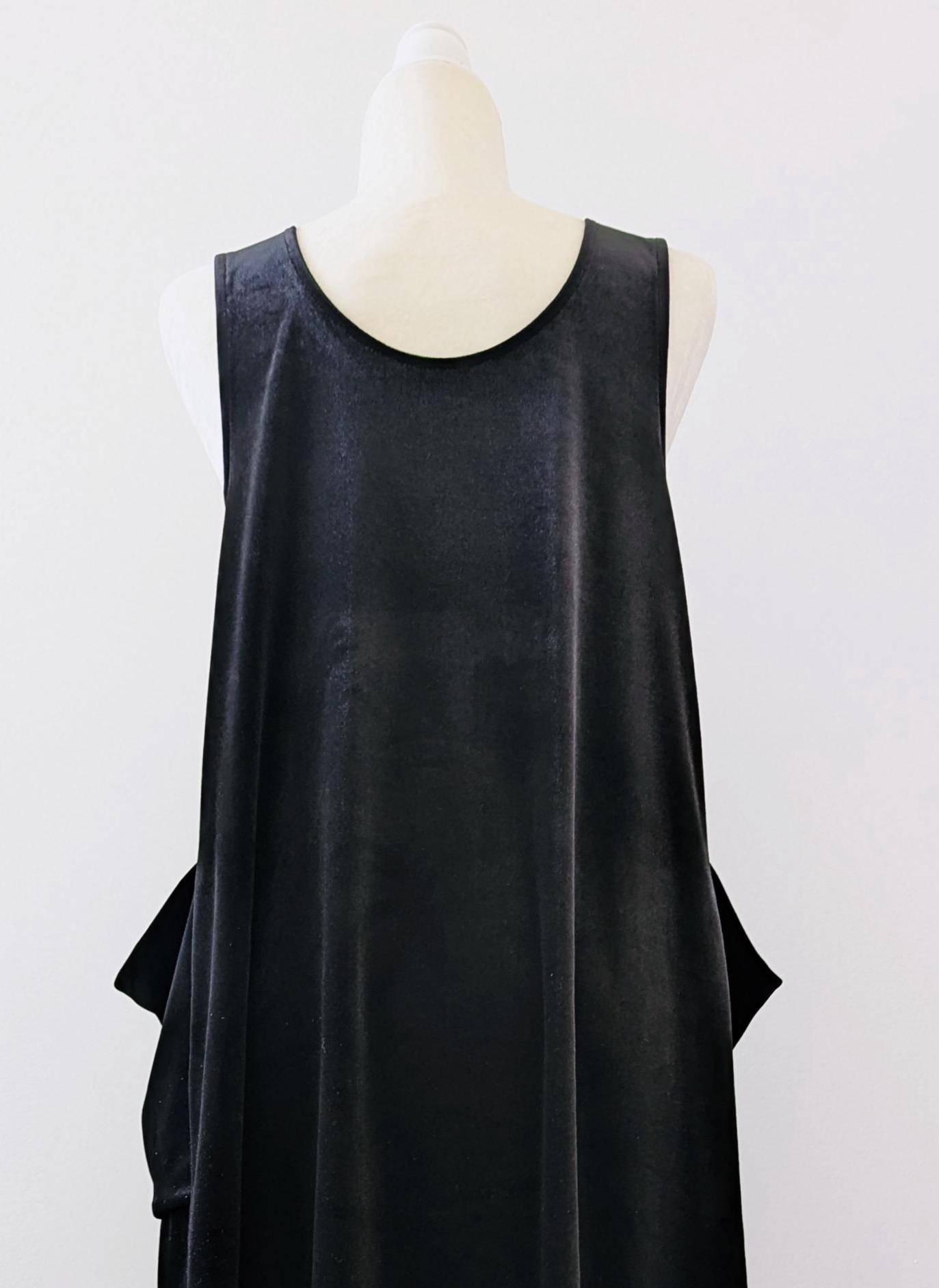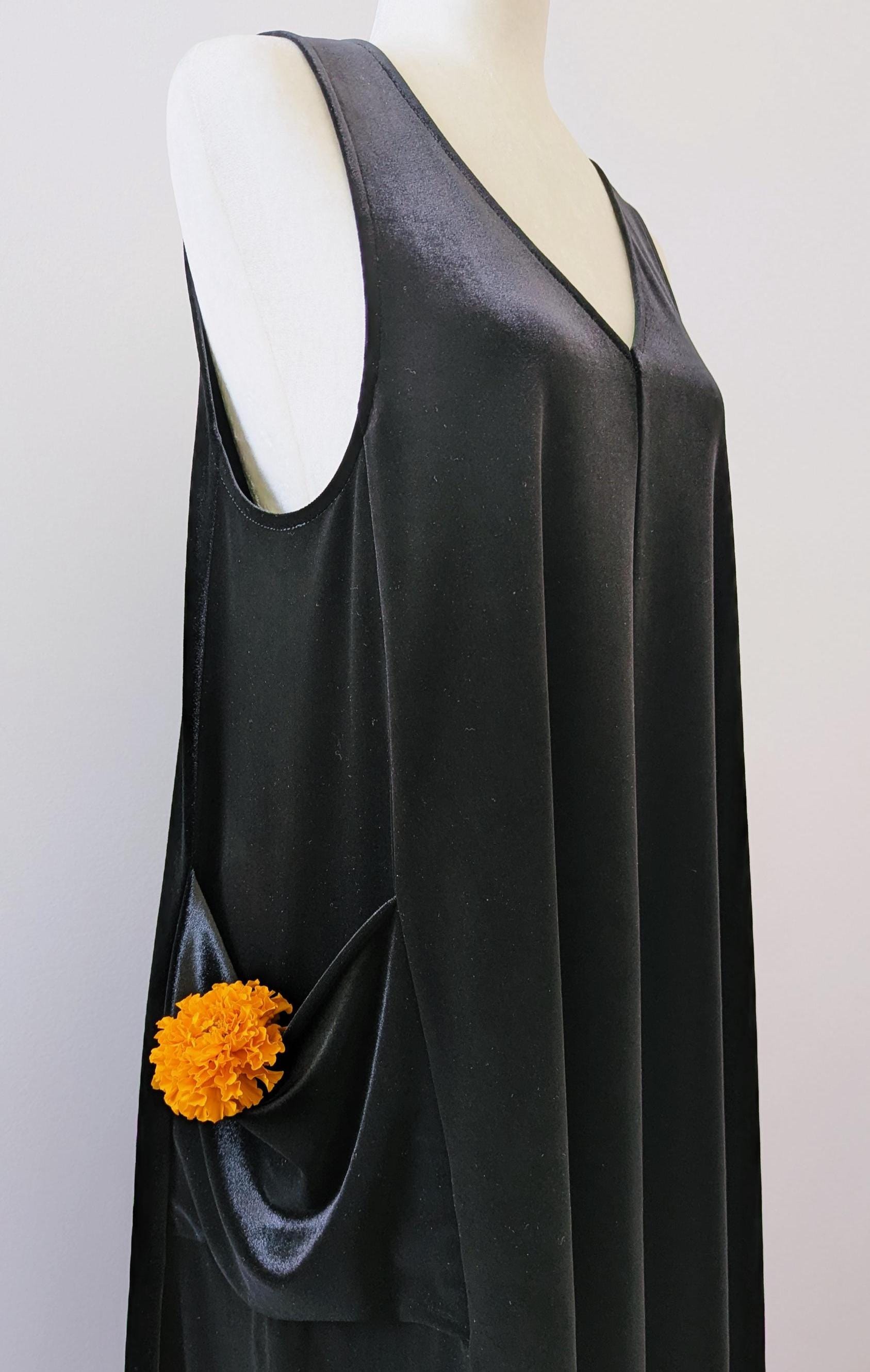 The Velvet Pixie Pocket Mini Dress is a fun and versatile style that features reversible v-neck and scoop necklines and slouchy pockets. Pair with a bralette or wear over a tee or blouse for a jumper look. Please note that the Rust Orange, Toffee, Blue Steel, & Jet Black fabrics are slightly heavier-weight than the Pink Mauve, Plum Purple, & Olive Green. Velvets appear dramatically different depending on lighting. Please request a swatch for $1 if you're unsure about a color.