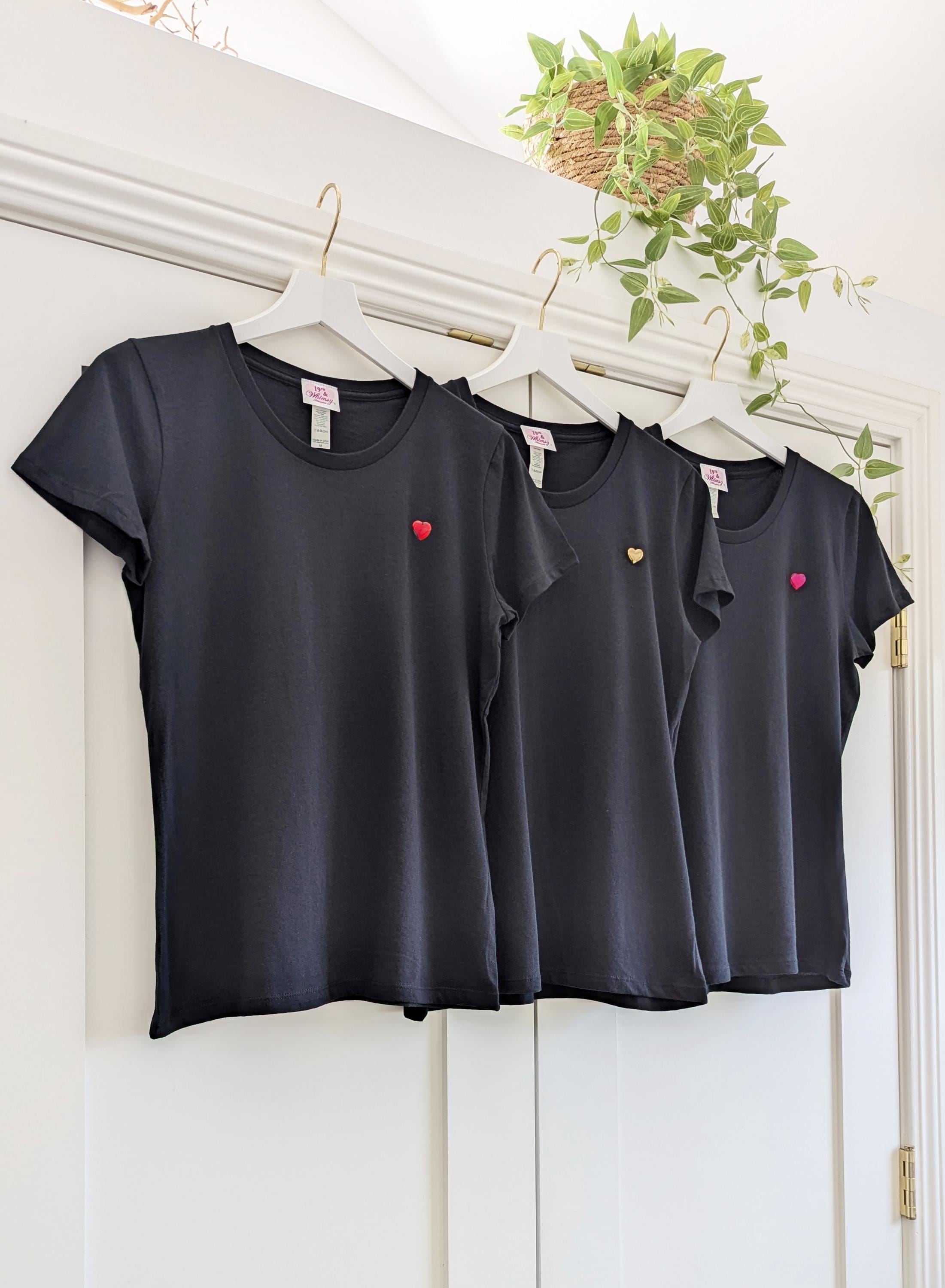 New style! The Organic Cotton Fitted Heart Tee features a classic fit, your choice of heart embellishment, and your choice of length: regular or cropped.