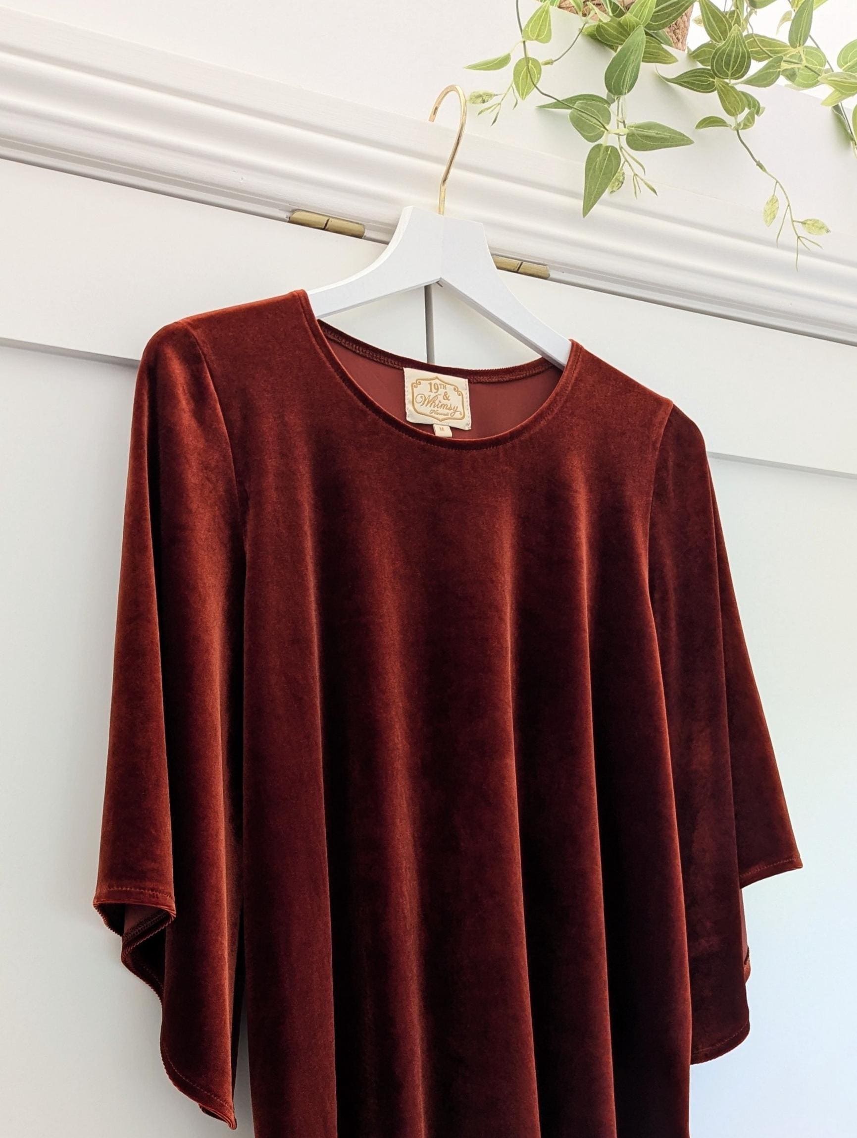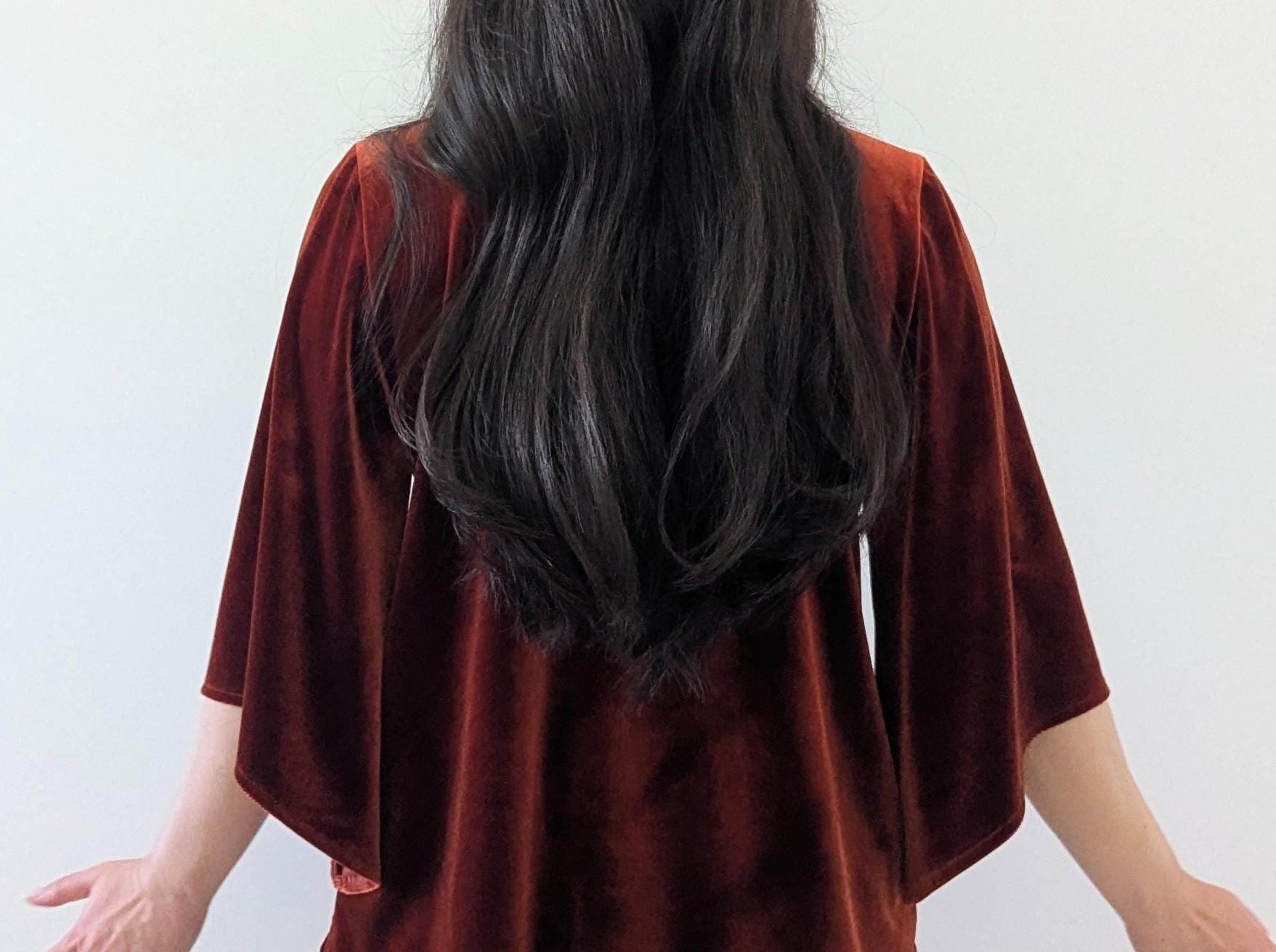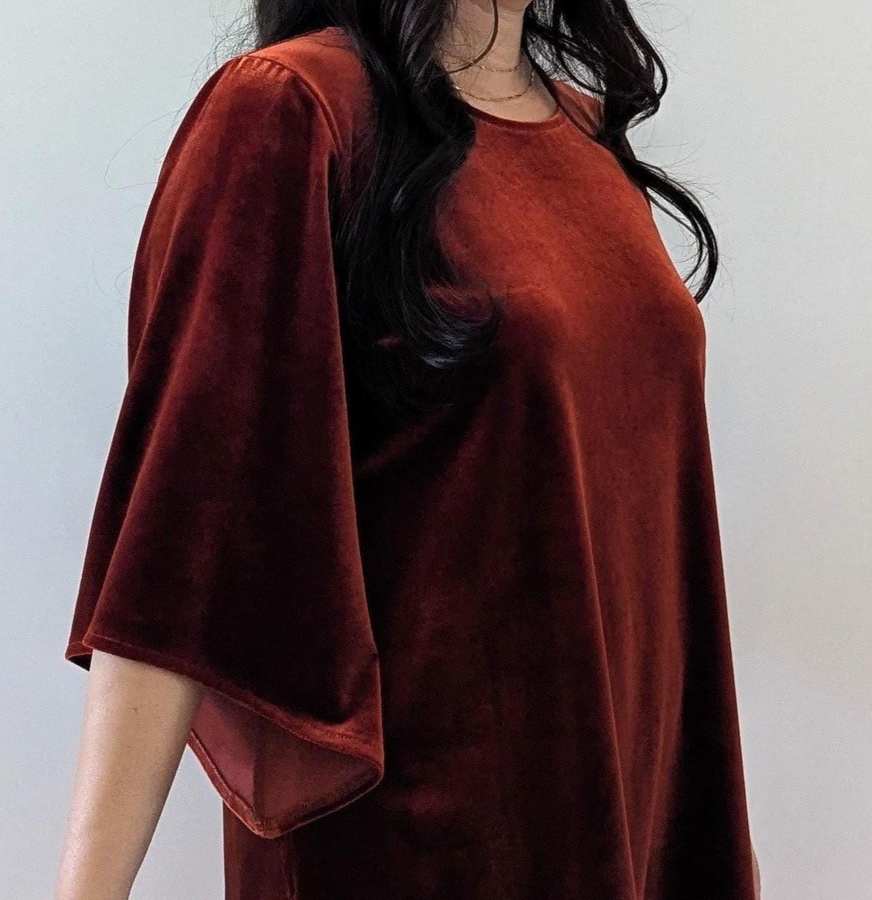 The Velvet Flutter Dress is my new favorite little dressy dress. Keep it simple with booties or flats or dress it up with a belt and jewelry. Please note that the Rust Orange, Toffee, Blue Steel, & Jet Black fabrics are slightly heavier-weight than the Pink Mauve, Plum Purple, & Olive Green. Velvets appear dramatically different depending on lighting. Please request a swatch first for $1 if you're unsure about a color.